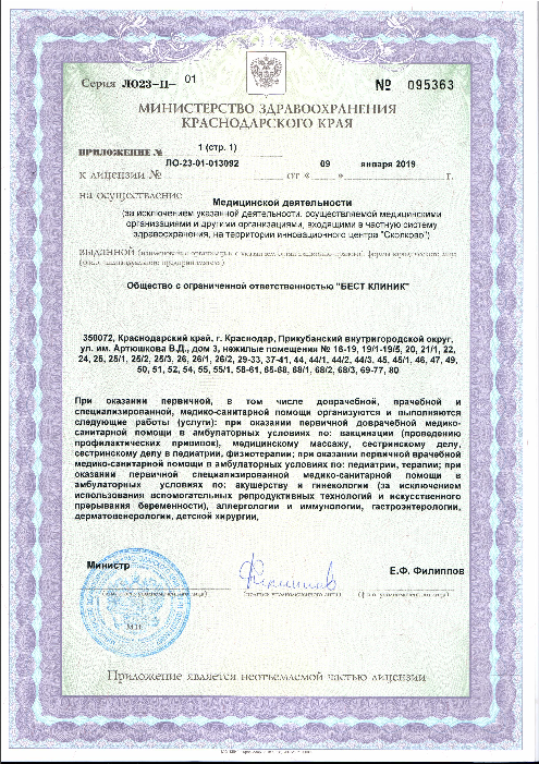 Бест Клиник на Артюшкова - цены на услуги